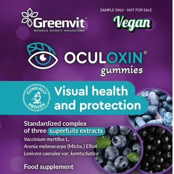 OCULOXIN® - VISUAL HEALTH SUPPORT a standardized extract of bilberry Vaccinium myrtillus L., haskap berry Lonicera caerulea L. var. kamtschatica and Aronia melanocarpa (Michx.) Elliott , designed to digital eye strain, visual support eye fatigue, age related eye disorders.