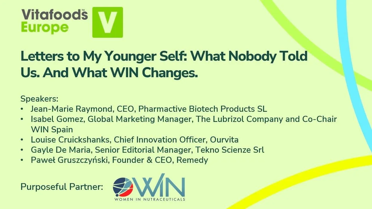 Five professionals from across the nutraceuticals industry take the stage at Vitafoods to share what they wish someone had told them earlier. Scientists, innovators, publishers, founders. Men and women. Five perspectives. One community. And one honest question: what would WIN have changed?